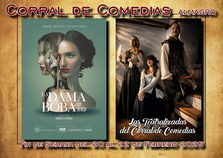 Del 20 al 22 de febrero, el espacio escénico más emblemático de Almagro acoge funciones matinales y vespertinas que reivindican la vigencia de los grandes autores del Siglo de Oro, con especial protagonismo de Lope de Vega, de la mano de la Fundación Siglo de Oro y del elenco estable de Las Teatralizadas del Corral de Comedias.
