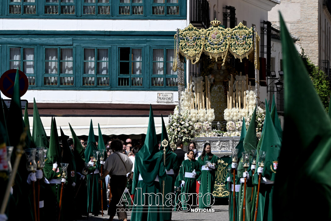 La Hermandad de Jesús de las Tres Caídas y María Santísima de la Esperanza ha protagonizado algunos de los instantes más intensos y esperados, con especial relevancia de la procesión del Silencio y, sobre todo, de la emblemática procesión de “El Hambre” en la jornada del Viernes Santo. Este desfile, considerado uno de los más multitudinarios y emotivos, ha vuelto a congregar a miles de personas que han llenado por completo las calles de Almagro para contemplar el paso de la Virgen de la Esperanza tras su Hijo, acompañada y custodiada por la milicia romana de los “Armaos”, en una escena de enorme carga simbólica y estética.